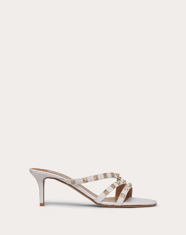Valentino Garavani Rockstud Calfskin Slide Sandal 60 Mm 2 4 In In White Modesens