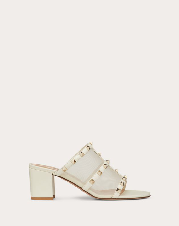 Valentino Garavani Rockstud Mesh Slide Sandal 60 Mm In Light Ivory Modesens